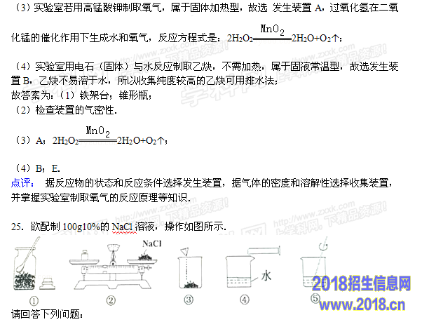 (3)据反应物的状态和反应条件选择发生装置,据反应原理书写方程式;