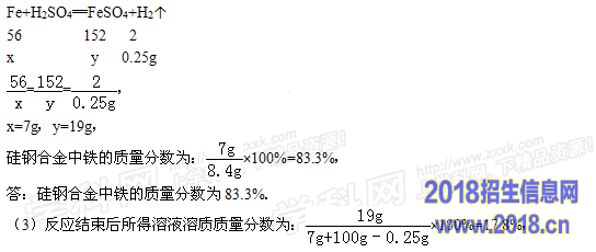 解:(2)设8.4g硅钢中铁的质量为x,生成硫酸亚铁的质量为y,