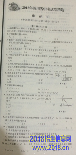 2015年四川省雅安市中考数学试题(扫描版,含答案)
