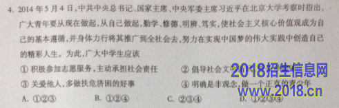 【解析】选D。本题考查的知识点是养成亲社会行为。题干中提到的社会主义核心价值观要求青少年的做法①②③④都符合题干的要求,也都是应该落实到行动中去的行为。
