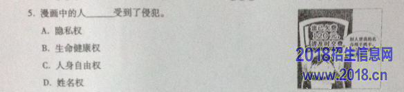 5.【解析】选D。本题考查的知识点是姓名权。回答本题时首先要仔细观察漫画中反馈出的信息是别人用我的名字办了手机卡,签了费还要我交,很明显能够看出是姓名权受到了侵犯。