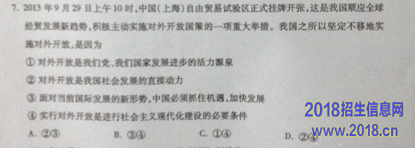 【解析】选B。本题考查的知识点是对外开放的作用。①②是改革的作用,③④是对外开放的作用,所以正确答案选B。