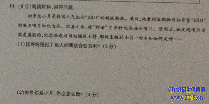 【解析】本题考查智力成果权和消费者权。第(1)问,唱片的盗版的侵犯了他人的智力成果权;纪念品与网站的描述不符侵犯了小月的知悉真实情况权和公平交易权。第(2)问,结合所学知识答出消费者的合法权益受到侵害时的维权途径即可。