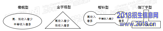 【解析】选A。居民收入合理的格局应该是居民收入差距在缩小,也就是低收入者和高收入者都在减少,因此,B不应该入选;C选项页违背了这一要求,也不应该入选;D选项低收入者人数过多,说明人均生活生活水平还比较低,也不是合理收入格局;A选项符合题意,高低收入人数在减少,差距在消失,应该入选。