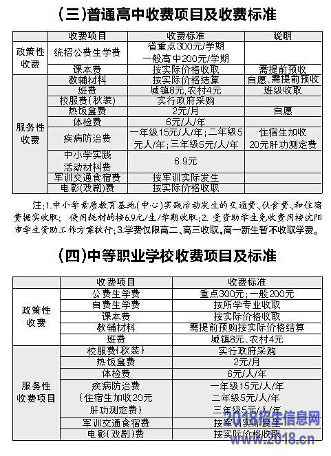 今年辽宁省取消了高中择校生计划,因此,在今年高中收费标准明细表中也取消了“择校费”一项。
