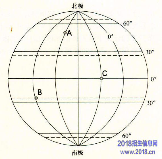 3.今天是1月30日,那么有关图中A、B、C三点说法正确的是