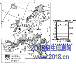 阅读欧洲西部略图和伦敦气候资料图,完成8—9题。