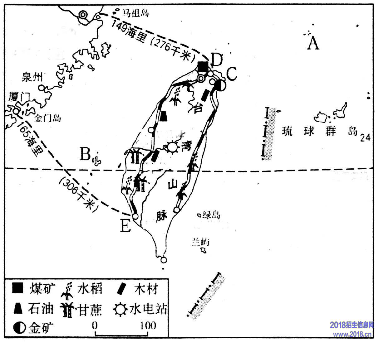读台湾岛图,结合所学知识回答18—20题。