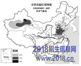 25.(10分)读图(2014年5月30日全国高温与降水量预报图),回答下列问题。
