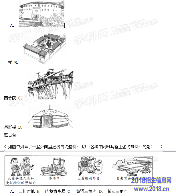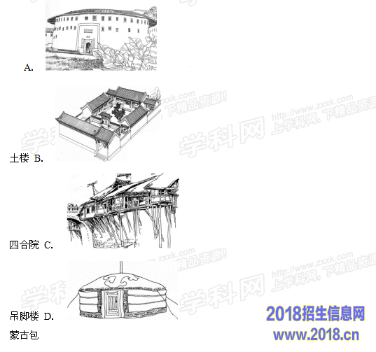 8.北京市拥有独特的历史文化,民居文化就是其中之一,如图中代表北京民居的是( )