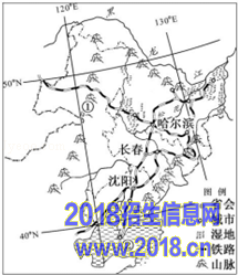 (5)从图中看出,东北地区纵横交错的铁路连接着全区各主要城市和工矿中心,其城市主要集中在铁路交通干线沿线地区;