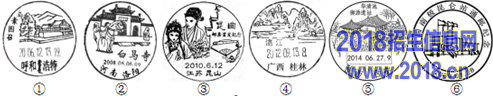 材料三,邮戳是邮局盖在邮票上的标记,邮戳上的地名是邮局所在地,下图是6个在不同地区加盖的邮戳.