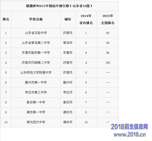 2015山东省高中排行榜(山东省10强)