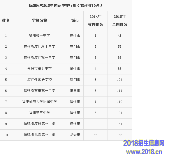 2015福建省高中排行榜(福建省10强)