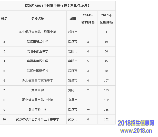 2015湖北高中排行榜(湖北省10强)