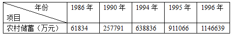 材料三 中国农村居民储蓄存款余额统计表