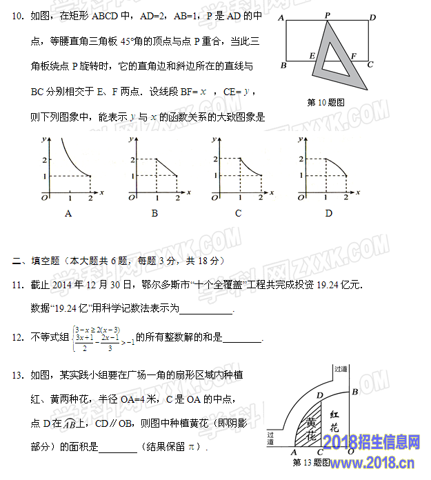 2015年内蒙古鄂尔多斯市初中毕业升学考试数学试题(WORD版,含答案)