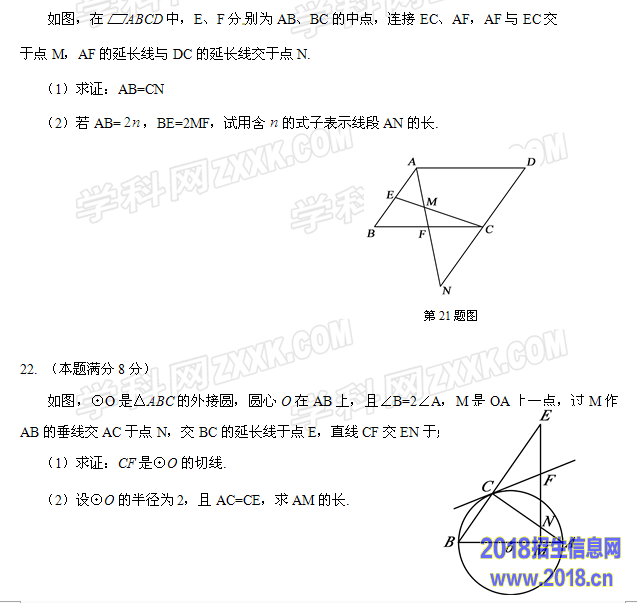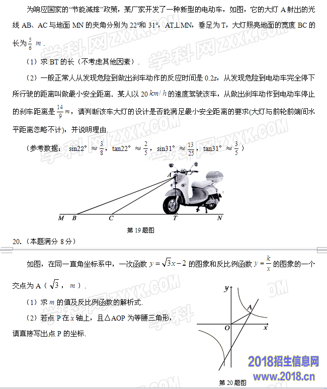 19.(本题满分8分)