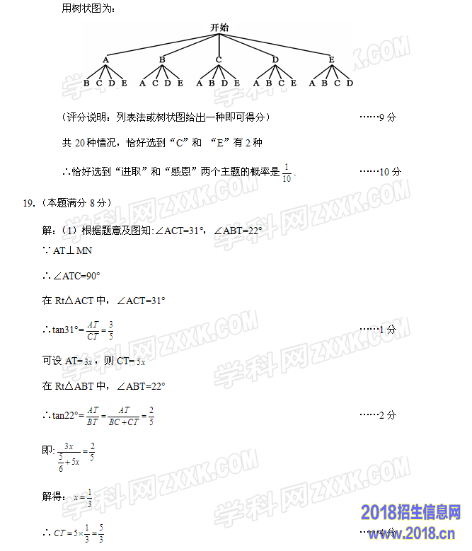 18.(本题满分10分)