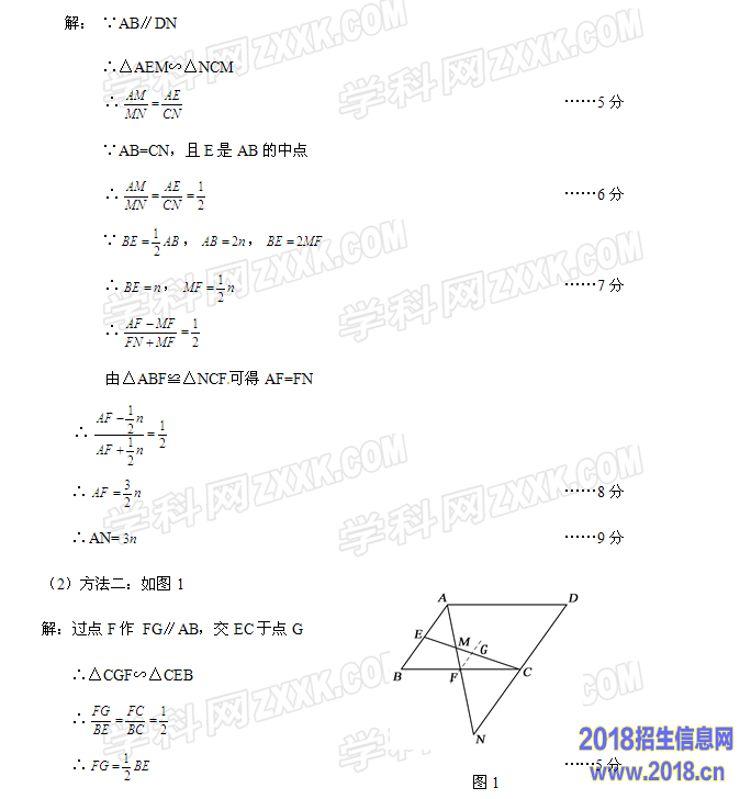 ∴∠B=∠FCN,∠BAF=∠N ……1分