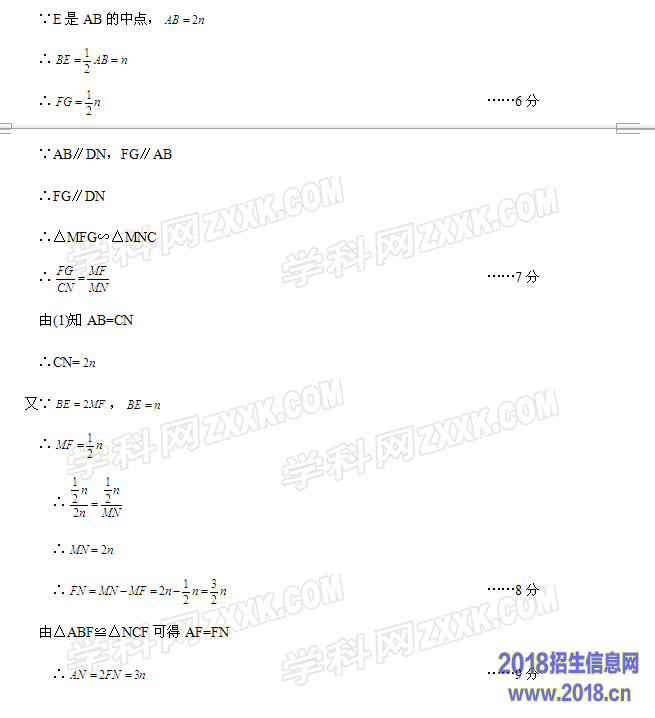 ∴△ABF≌△NCF(AAS) ……3分