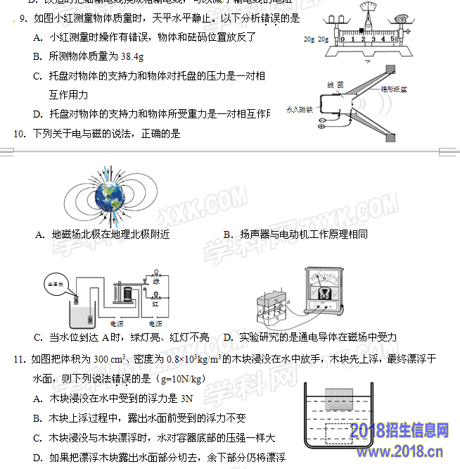 15. 电磁波 ; 2 g/cm3; 2×102Pa(或200Pa )。