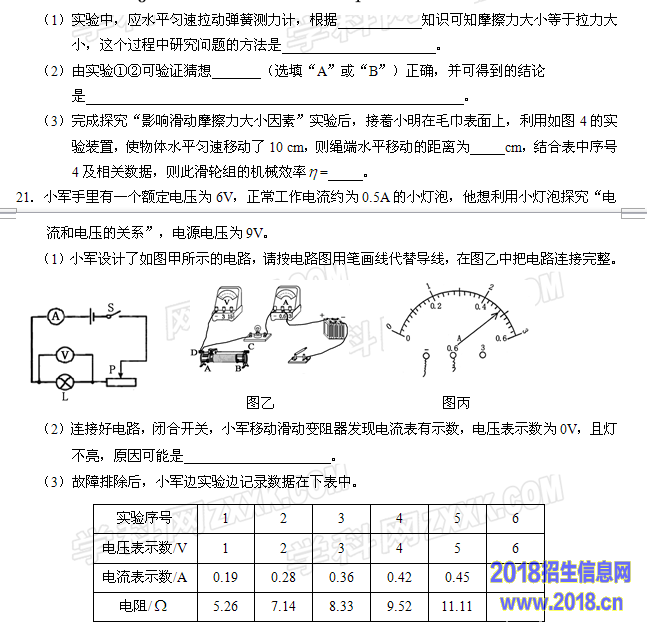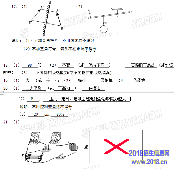 三、作图与实验探究题(本大题共5题,17题2分,18题4分,19题4分,20题6分,