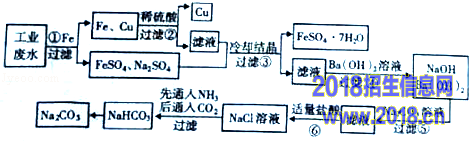19.(12分)(2015•内江)某工厂的工业废水中含有大量的FeSO4以及一定量的CuSO4和Na2SO4,为减少污染并变废为宝,某学习小组设计以下流程,拟从该废水中回收硫酸亚铁、金属铜,并利用氨碱法原理“制碱”.(除标注外,所加药品或试剂均过量,部分产物及反应条件略去)