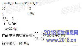 (2)利用质量守恒定律可计算出铁与硫酸恰好完全反应时放出氢气的质量,由反应产生氢气的质量,根据反应的化学方程式,计算参加反应的铁的质量,所计算的铁的质量与所取样品质量比即为样品中铁的质量分数;