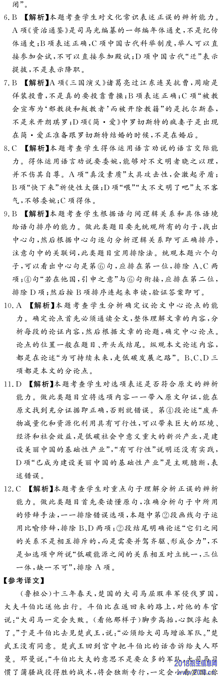 C.乙文中斗伯比预知战争的结局,提出了“必济师”的建议,目的是希望楚王能对屈瑕进行镇抚,并使他加强防备。