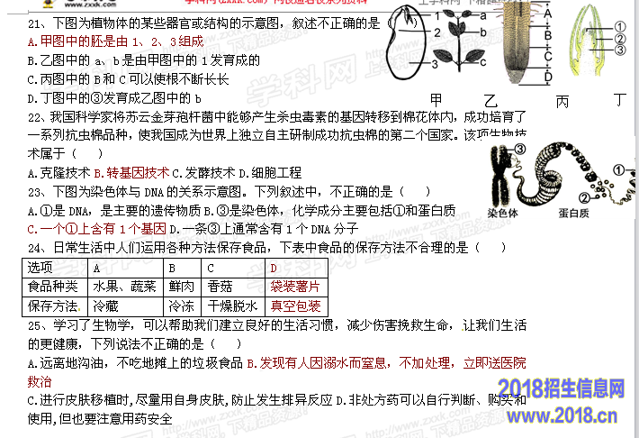 25、学习了生物学,可以帮助我们建立良好的生活习惯,减少伤害挽救生命,让我们生活的更健康,下列说法不正确的是( )