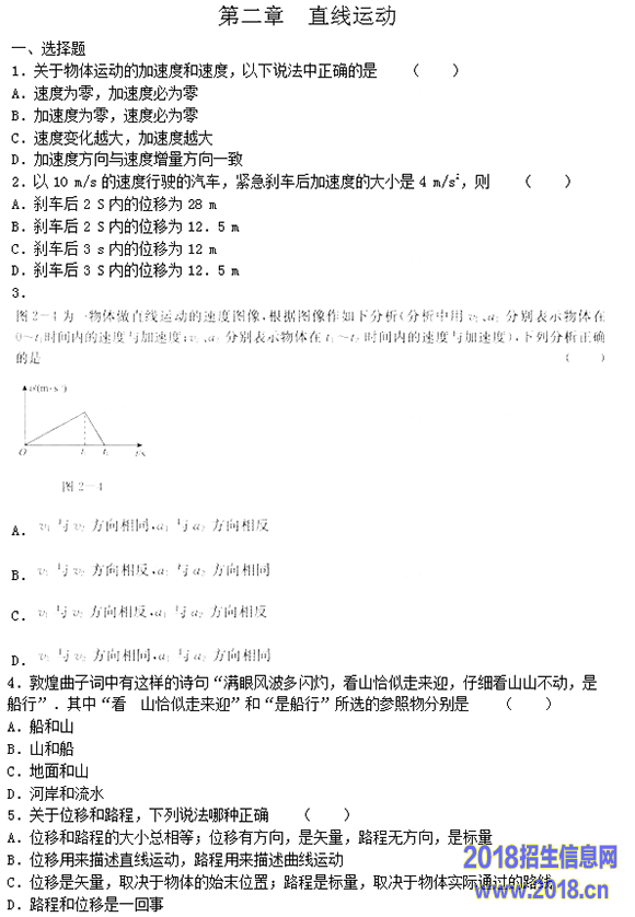2015年成人高考物理第二章强化试题及答案