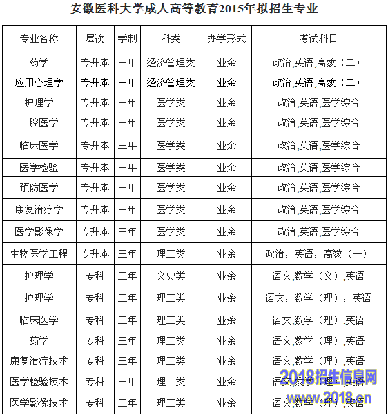 2015年安徽医科大学成人高等教育招生简章