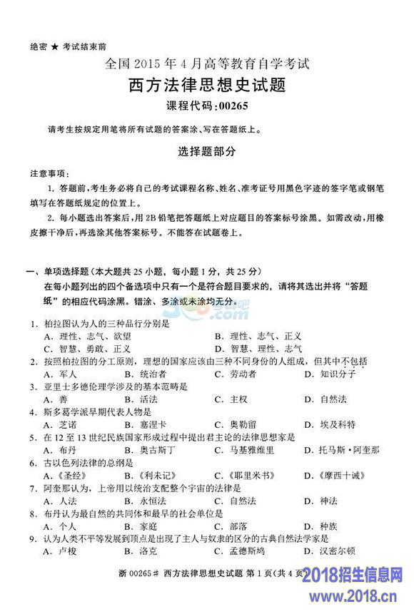 全国2015年4月自学考试《西方法律思想史》真题