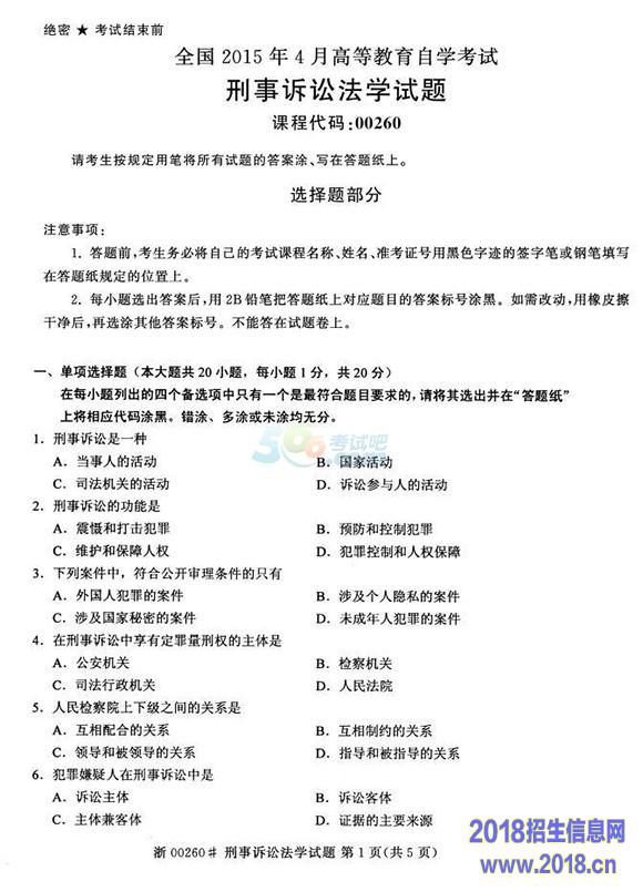 全国2015年4月自学考试《刑事诉讼法学》真题
