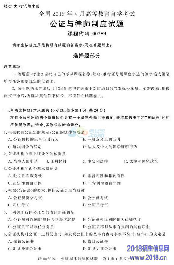 全国2015年4月自学考试《公证与律师制度》真题