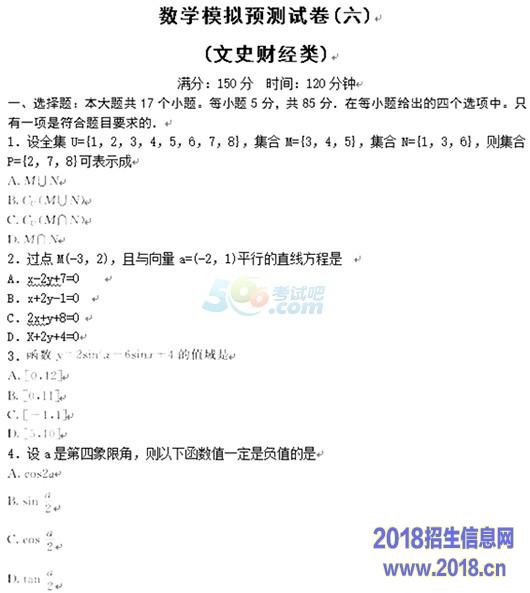 2015年成人高考高起点数学(文)模拟试题及答案(8)