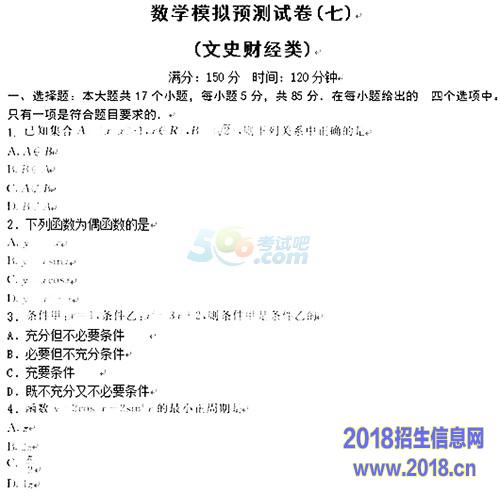 2015年成人高考高起点数学(文)模拟试题及答案(9)