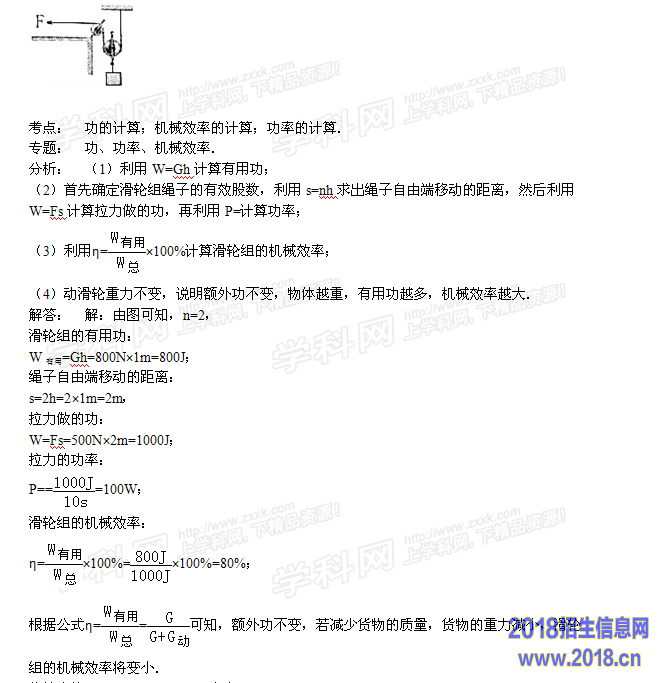 点评: 本题考查功、功率、机械效率计算,关键是公式及其变形的灵活运用,重点是动滑轮上绳子段数的分析,难点是机械效率的推导公式.