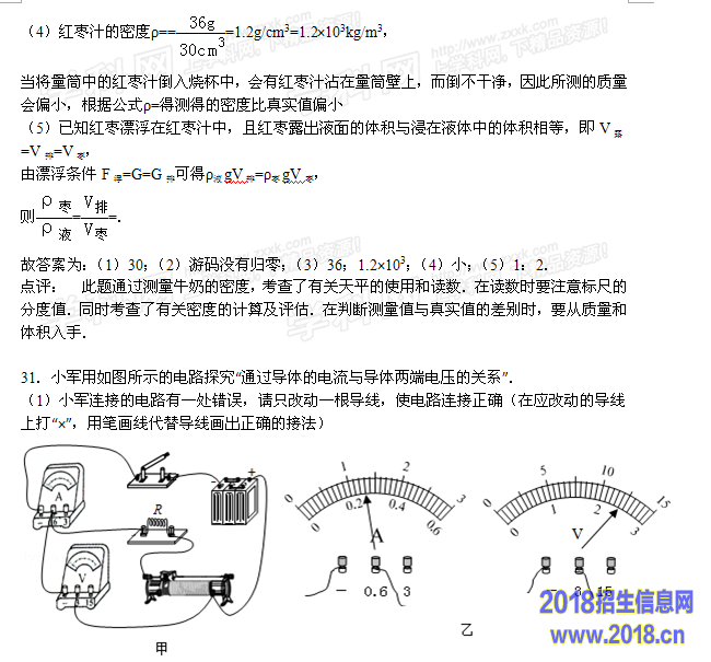 (3)天平平衡时物体的质量等于右盘中砝码的质量加游码在标尺上所对的刻度值.烧杯中红枣汁的质量为总质量减去空烧杯的质量.
