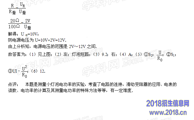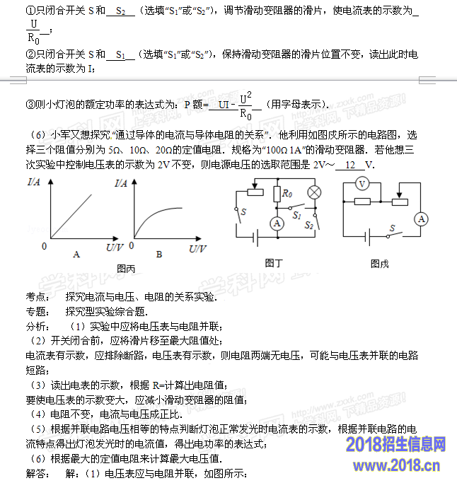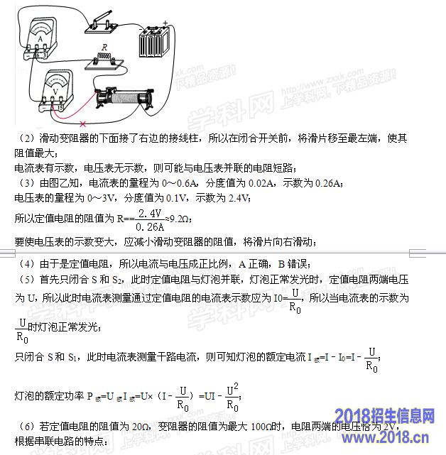 (2)灯的亮度取决于灯的实际功率,根据欧姆定律可判出电阻关系.