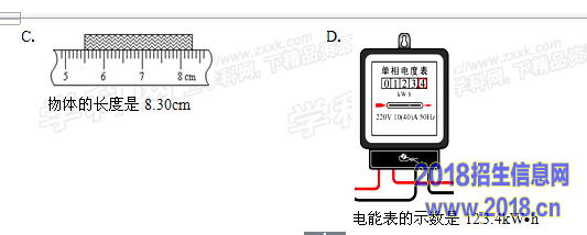 C、物体左侧与5.50cm对齐,右侧与8.30cm对齐,所以物体的长度为8.30cm﹣5.50cm=2.80cm.故C错误;