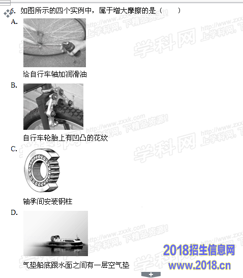 解答: 解:A、给自行车轴加润滑油,是在压力一定时,通过减小接触面的粗糙程度来减小摩擦力,不合题意;
