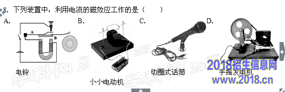 D、手摇发电机是利用了电磁感应的原理制成的,不是利用电流的磁效应,故D不合题意.