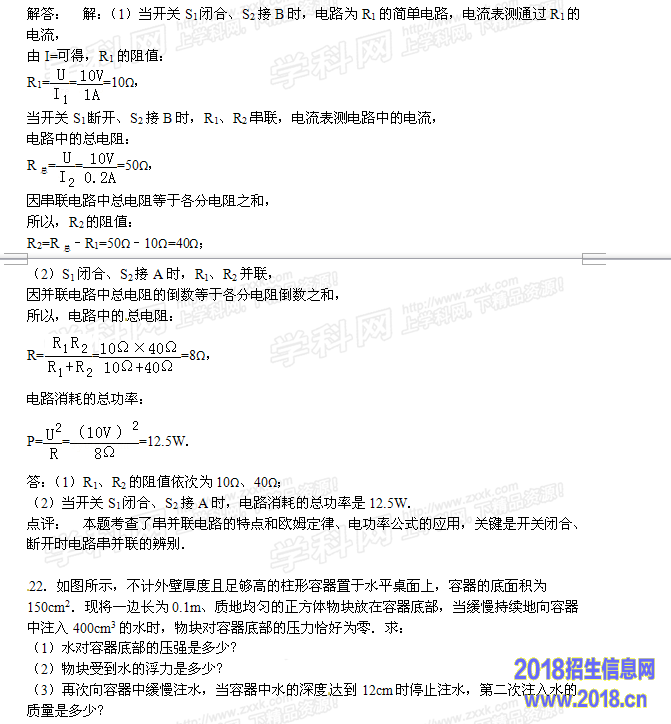 即G0+1.0×103kg/m3×V0×10N/kg=1.8N﹣﹣﹣﹣﹣﹣﹣﹣②