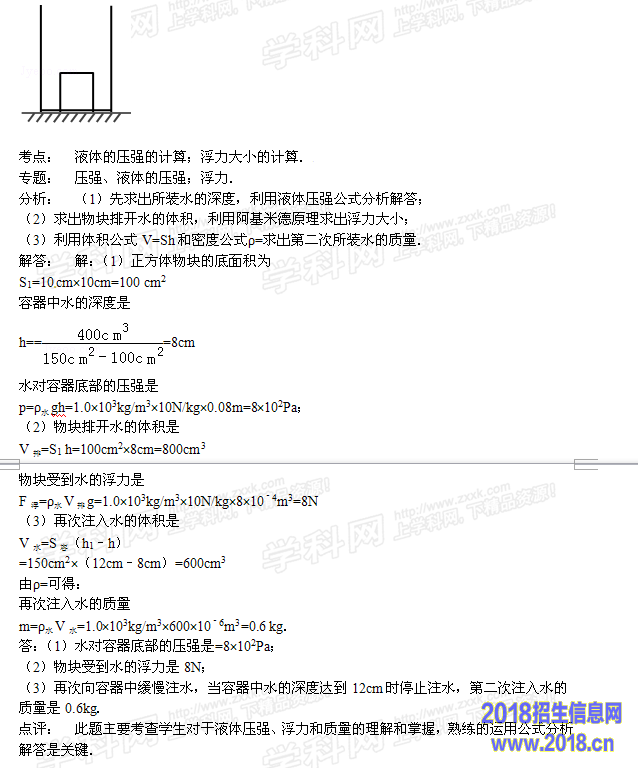 解得:V0=10﹣4m3=0.1dm3;=1×10﹣4m3;
