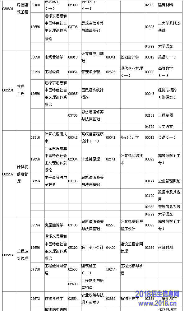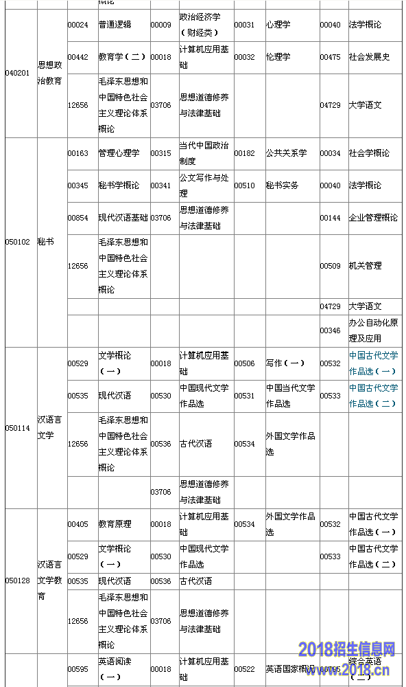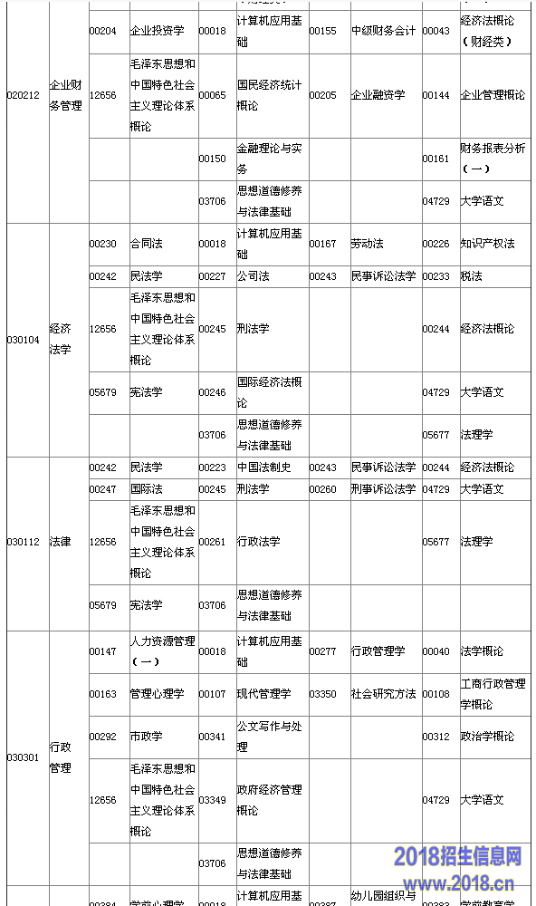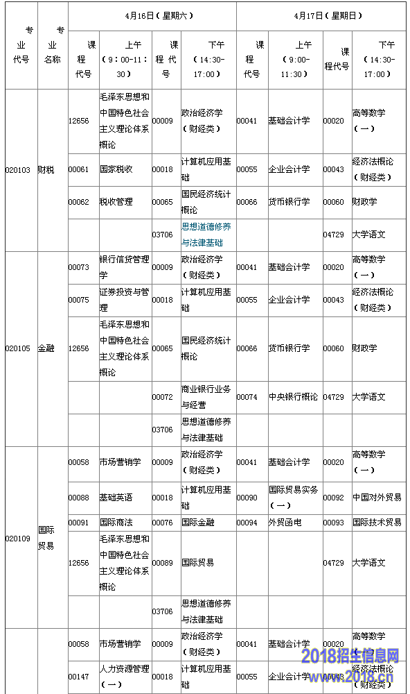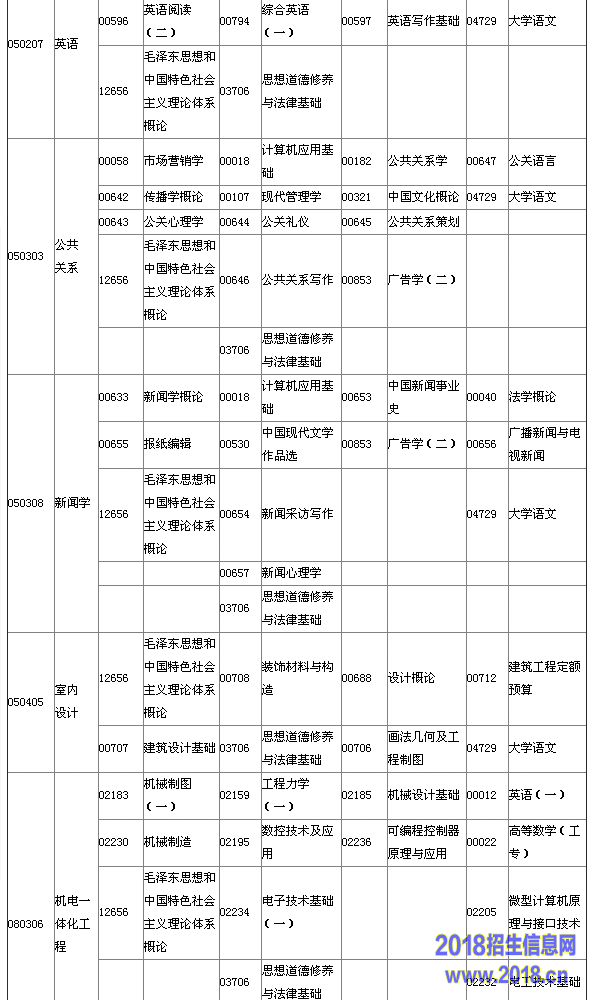 注:标注“**加试”的课程为报考我省高等教育自学考试本科段(或独立本科段)部分专业、不考英语(二)(00015)课程所须加试的规定课程。