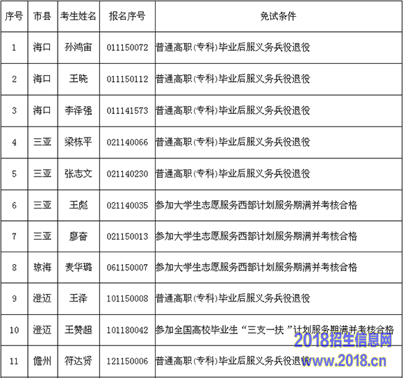 现将经审查拟定为2015年海南省成人高校招生全国统一考试符合免试条件的孙鸿宙等19位考生名单(见附件)予以公示,接受群众监督。接受群众反映单位:海南省考试局成招处,电话:65321686。