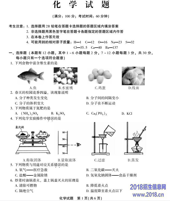 2015年福建省宁德市中考化学试题(图片版,含答案)