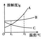9.A、B、C三种物质的溶解度曲线如右图所示,将t1℃
